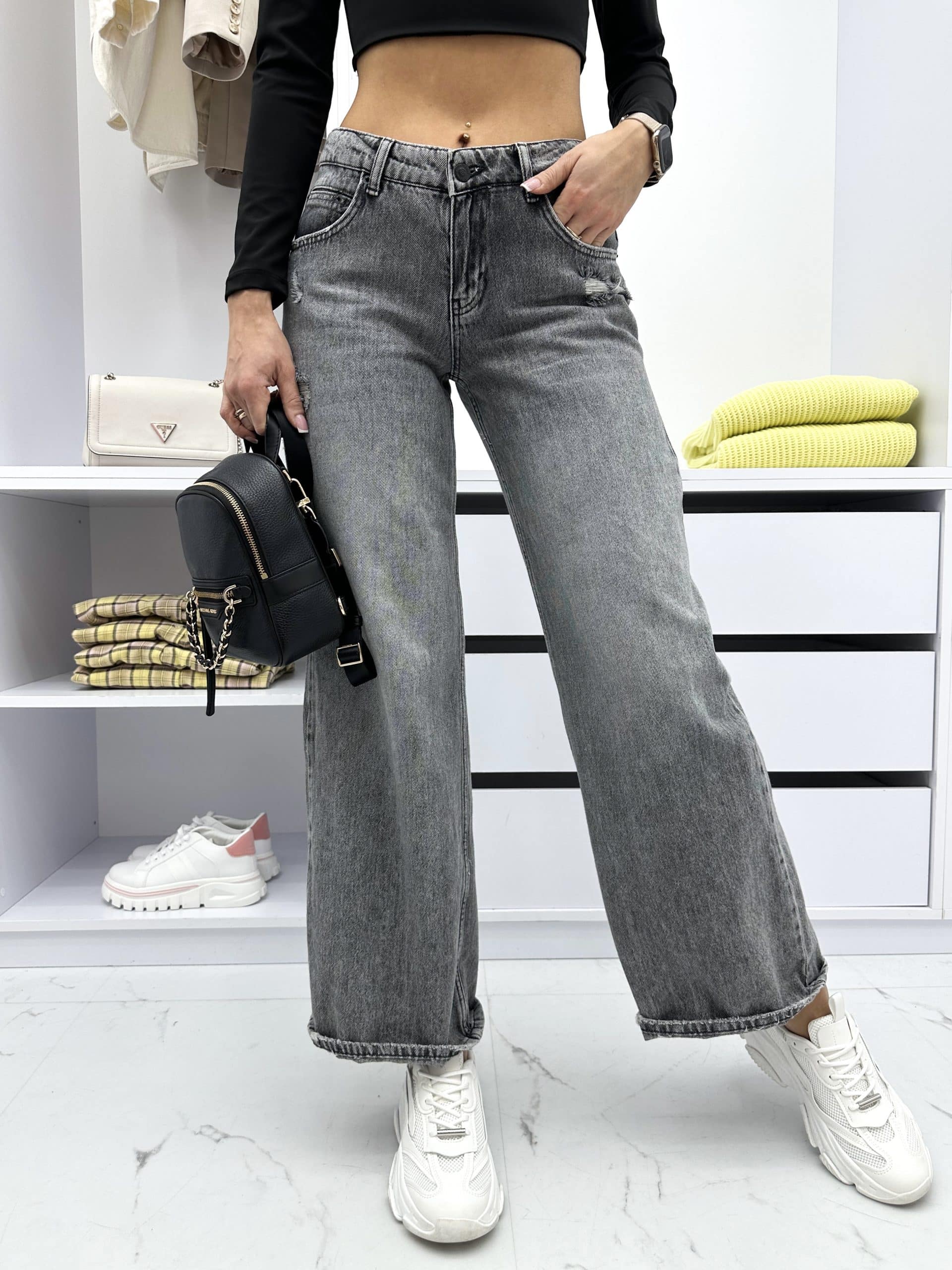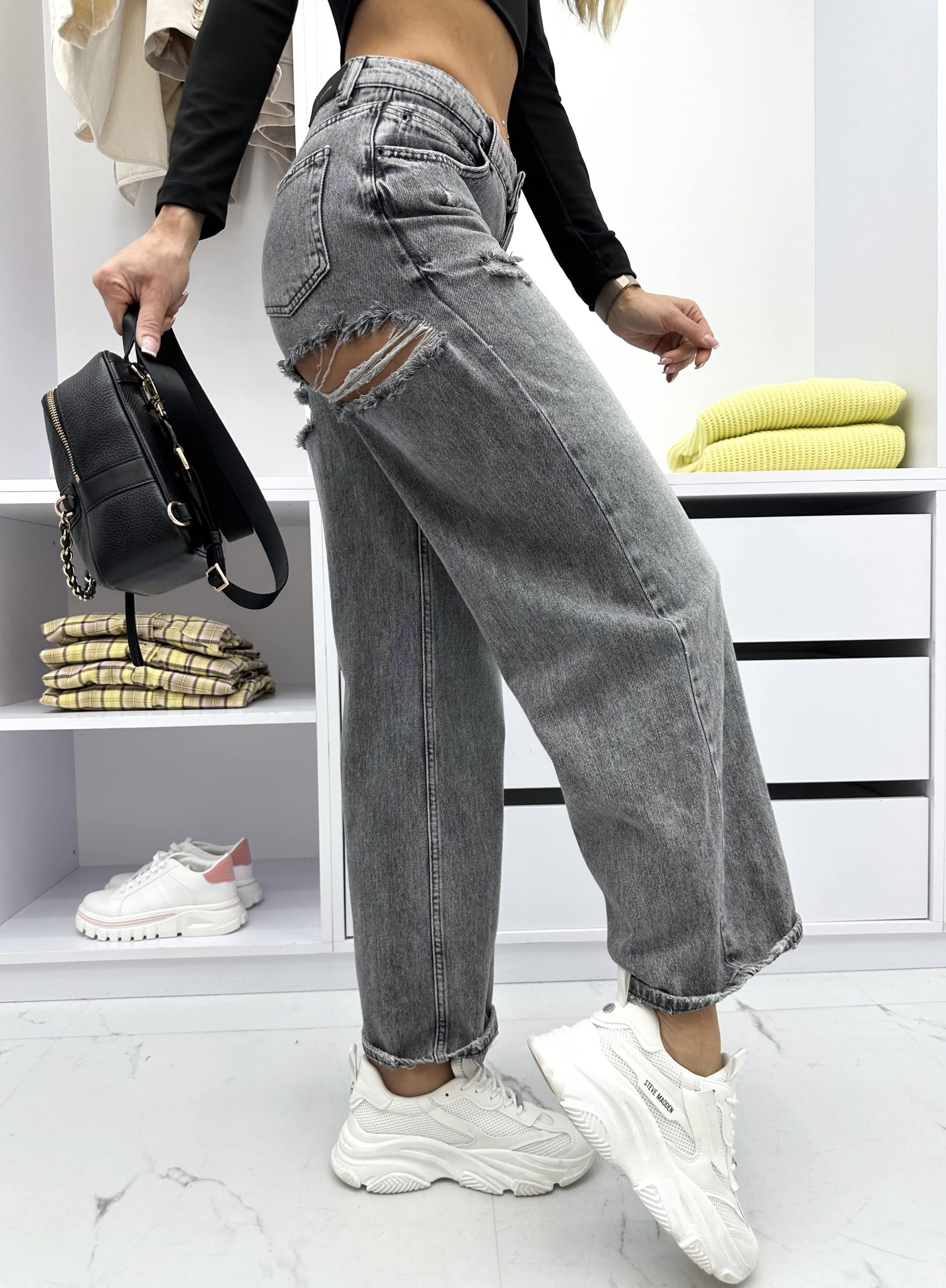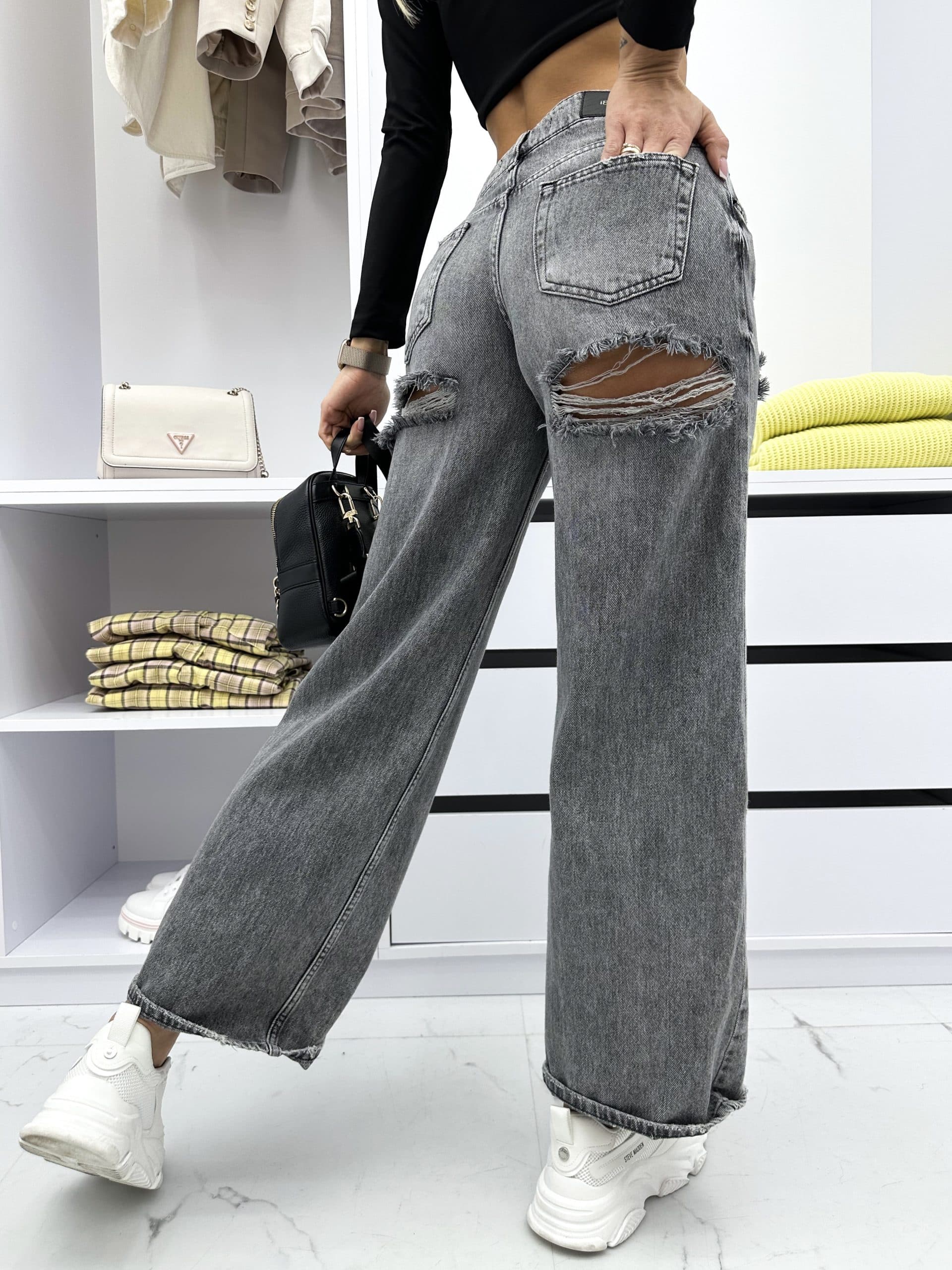 Oryginalny i wyjątkowy fason spodni jeansowych AMBRESY to zdecydowanie must have tego sezonu! Idealne modowe połączenie dla Kobiet, które lubią eksperymentować ze stylem i lubią wyróżniać się z tłumu!